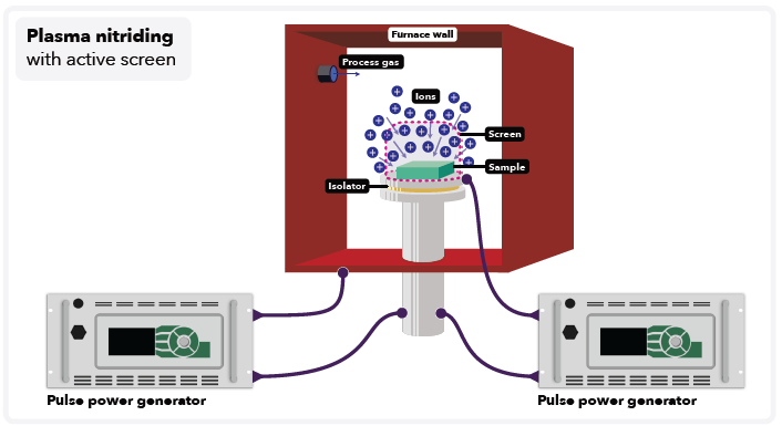Plasma-Nitriertechnik als auch Carbonitriertechnik ist ein thermotechnisches Verfahren zur Oberflächenhärtung von Metallen bei dem durch das Anlegen einer elektrischen Spannung im Vakuum ein Plasma erzeugt wird. Durch das ionisierte Gas wird Stickstoff bzw. Kohlenstoff in die Randschicht eindiffundiert