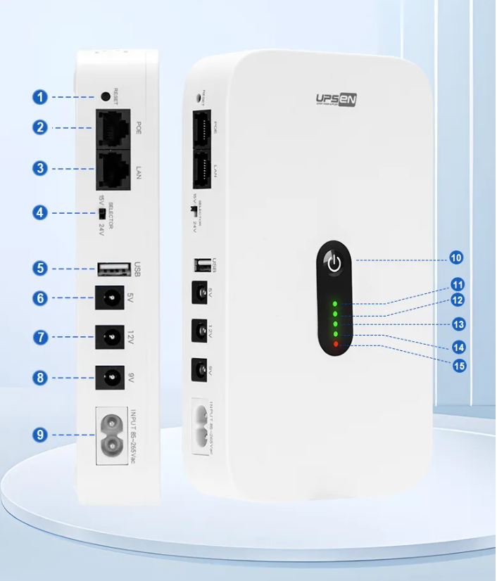 Mehrport-Ausgänge mit 5V, 9V, 12V und POE zur Versorgung für jedes Gerät mit 5V, 9V oder 12V Spannung.
